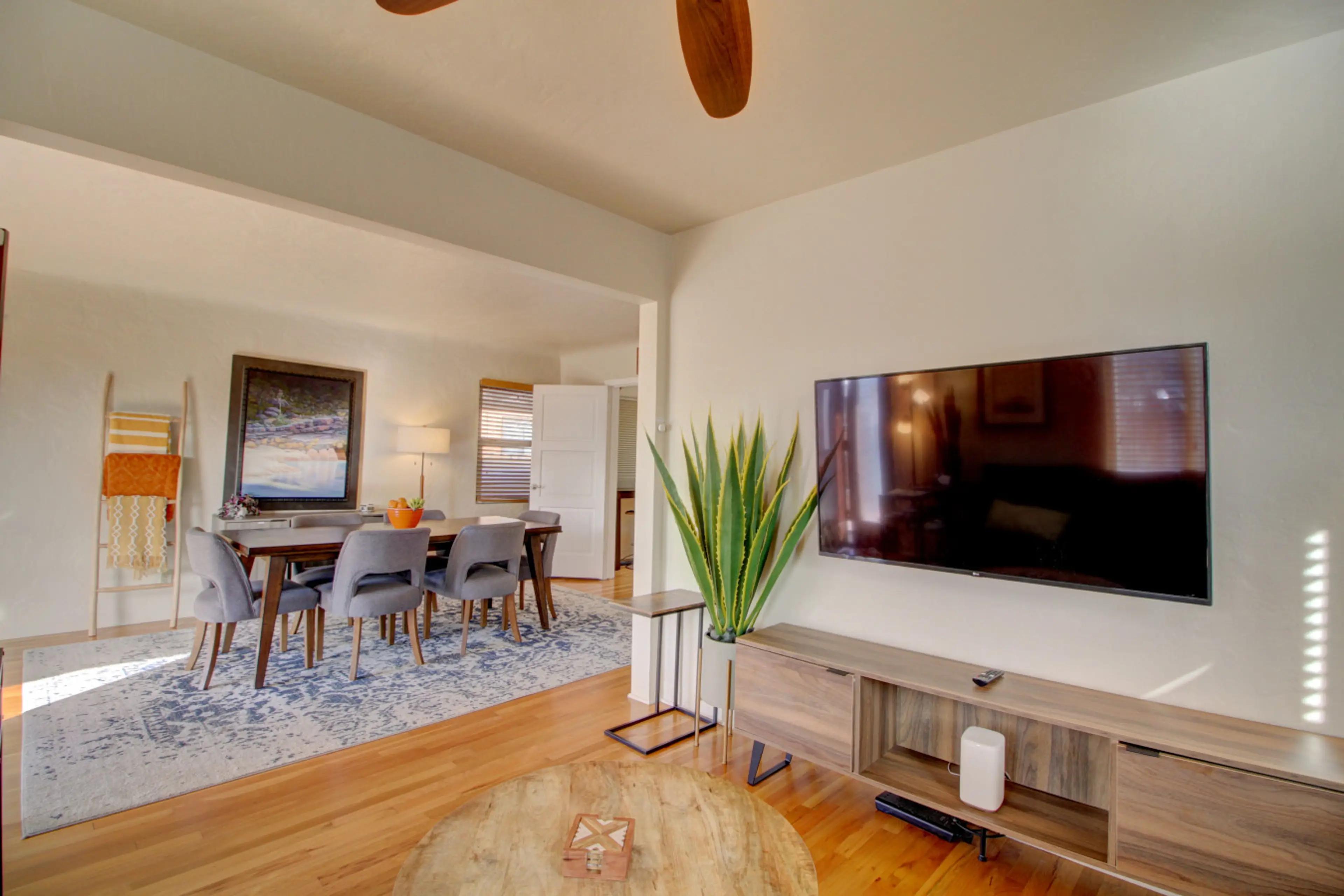 Welcome to Enchanted Homes - Nob Hill. This 3-bedroom, 2-bathroom home has a comfortable interior, enclosed front and backyards, and a patio. Two bedrooms have a king memory foam bed and smart TV. Third bedroom has two twin memory foam beds. Mattresses are plush. Full kitchen and grill for cooking. ...